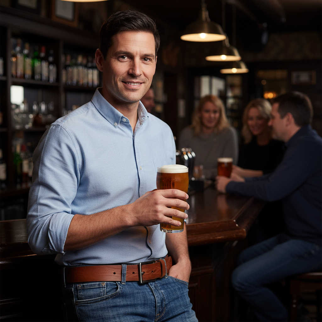 Ein Gürtel aus echtem Leder ist ein Klassiker der Herrenmode – robust, langlebig und mit einer natürlichen Ausstrahlung ausgestattet. Hochwertiges Leder fühlt sich angenehm an, wirkt edel und entwickelt mit der Zeit eine charaktervolle Patina, die deinen persönlichen Stil unterstreicht. Gerade in mittelbrauner Farbe bringt ein Ledergürtel Wärme und Vielseitigkeit in deine Garderobe, da er sowohl zu dunklen Jeans als auch zu helleren Stoffhosen harmoniert.